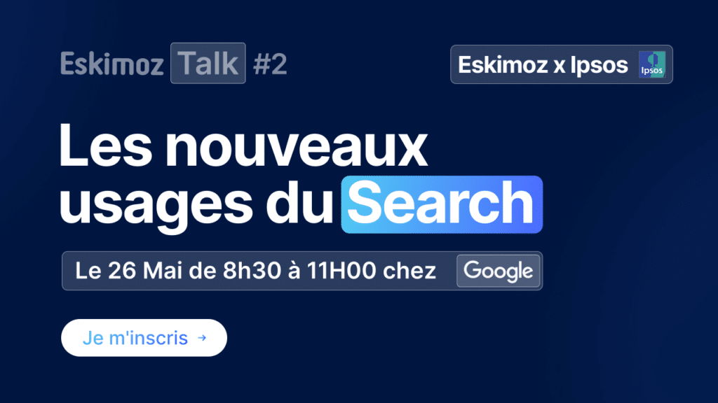 Eskimoz organise une grande conférence chez Google à Paris, le lundi 26 mai de 8h30 à 11h, sur les nouveaux usages du Search en France. Eskimoz y présentera en avant-première une étude exclusive menée avec Ipsos sur les nouveaux comportements de recherche en ligne. Il y aura également des prises de parole de Google et de SNCF Connect, le tout autour d’un café et de viennoiseries.