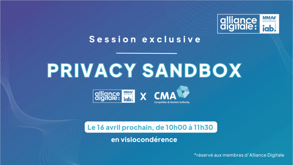 Le 16 avril prochain de 10h00 à 11h30, Alliance Digitale a le plaisir de convier ses membres pour une session d'information exclusive en visioconférence sur l’un des enjeux majeurs du marketing digital : la Privacy Sandbox.