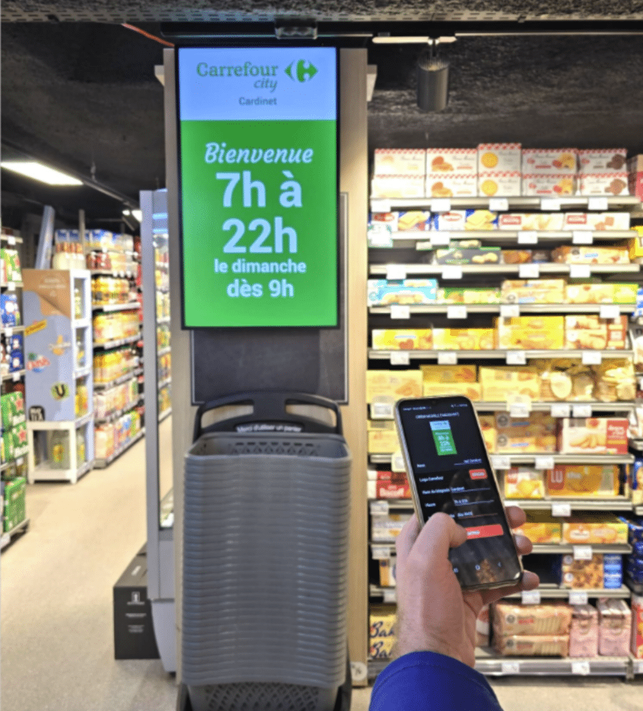 La seconde consiste en des écrans en arche installés à l’entrée des magasins Carrefour, conçus pour capter l’attention dès l’arrivée des clients. Ces initiatives ouvrent désormais la voie à un projet Instore en France, au sein d’un réseau aussi large que pertinent : Carrefour Proximité.